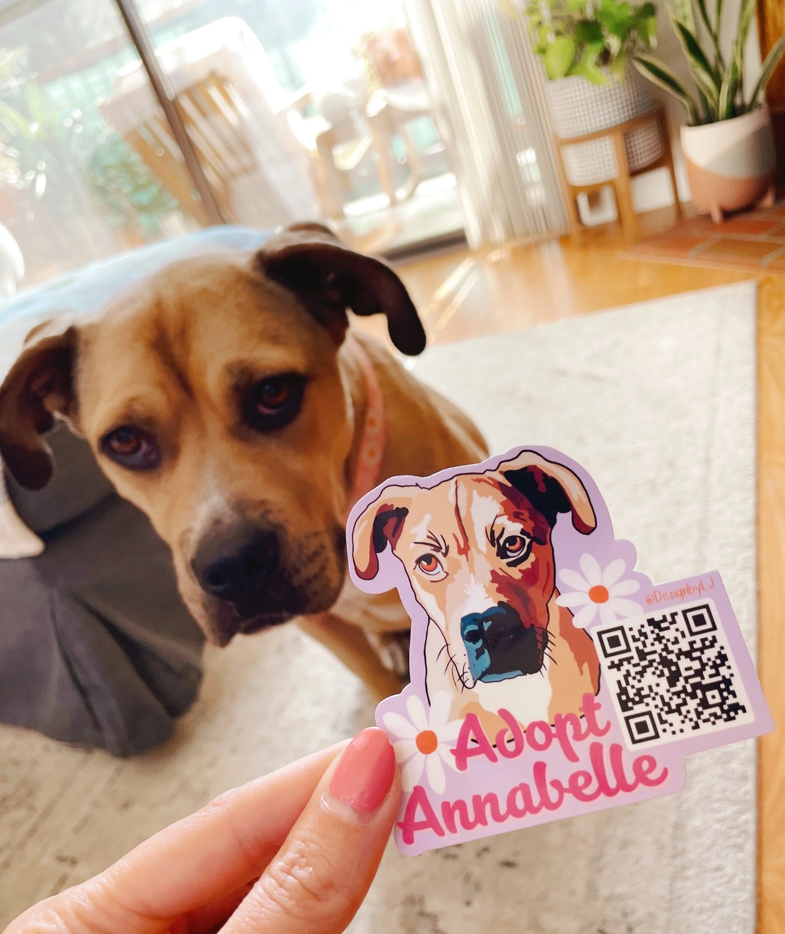 We created a special Adopt Annabelle sticker series in collaboration with LA Animal Services to help promote one very lovable foster pup looking for her forever home. Each sticker features Annabelle’s sweet face and playful spirit, designed to catch hearts and raise awareness for pet adoption. Included is a QR code that links to all of her info. As her foster, I’ve been bringing Annabelle—and her stickers—to local adoption events to help her (and her adoptable friends!) get noticed. It’s a fun, creative way to support rescue efforts and spread the word that amazing pets like Annabelle are looking for their fur-ever homes.